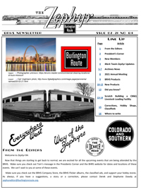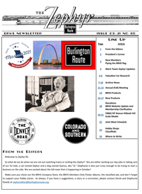 Zephyr #51 (pdf) Sorry, this item is no longer available. "Issue 2-05 Color issue, Moline, IL Spring Meet recap, around the system, 2006 Annual Meet to be in Grand Island October 12-15,2006, New products and books, LaGrange, IL article with drawings, model review of XML-4 boxcars, Q&A, exchange place. 20 pages with 76+ photos and illustrations."
